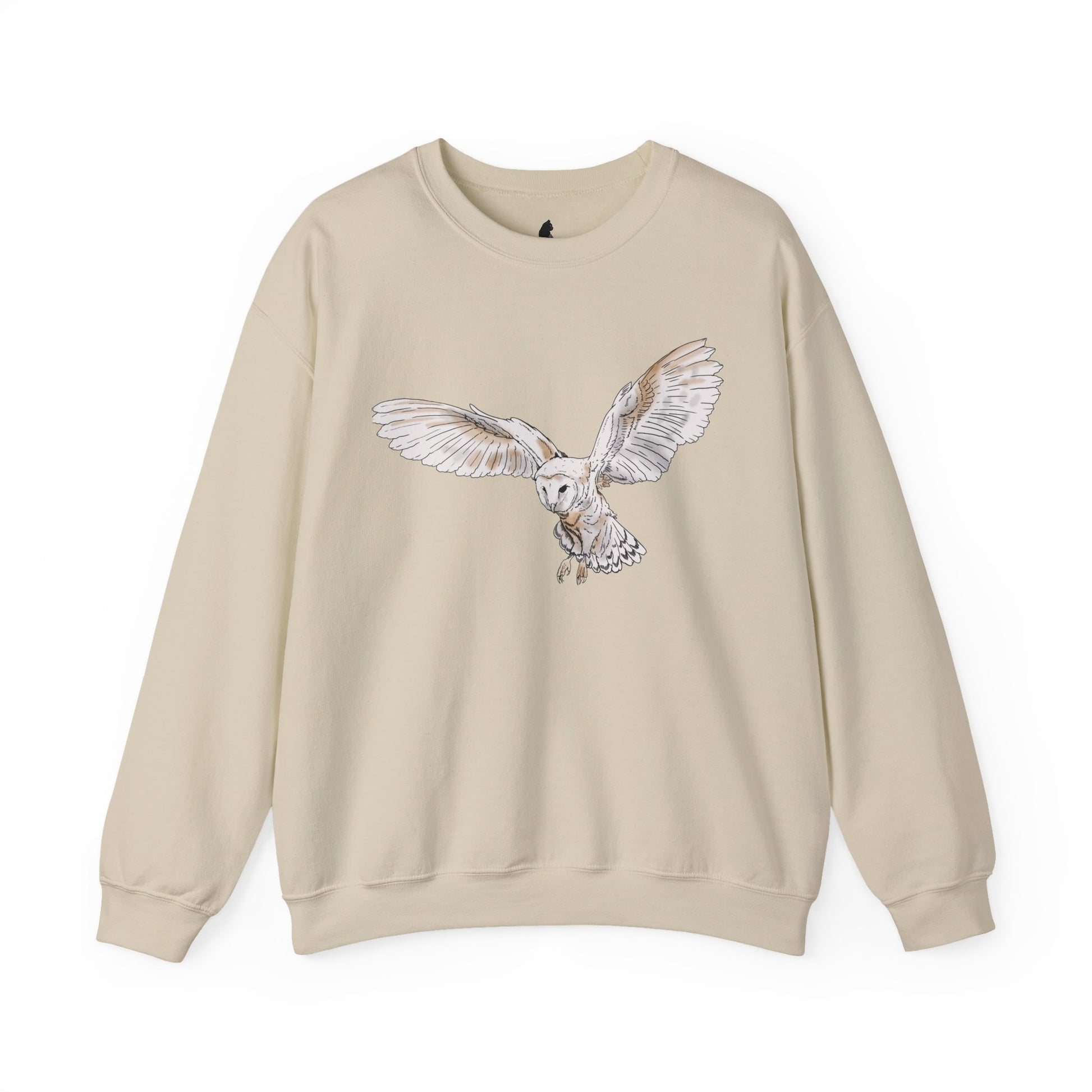 A soft, roomy crewneck sweatshirt that carries a quiet, nature-inspired story. Fronted with a detailed barn owl in mid-flight, the design feels like a hush of wings across an evening field. The back features a vintage ’CERTIFIED’ stamp logo, weathered and graphic, giving the piece a lived-in, collectible vibe. Wear it on cool walks, late-night stargazing, or when you want something that blends comfort with a subtle, thoughtful aesthetic. The medium-heavy cotton-poly blend drapes easily and holds its shape; embroidered accents are available for a tactile, heirloom touch. This sweatshirt marries practical durability with an artful, woodland mood — calm, steady, and quietly confident.