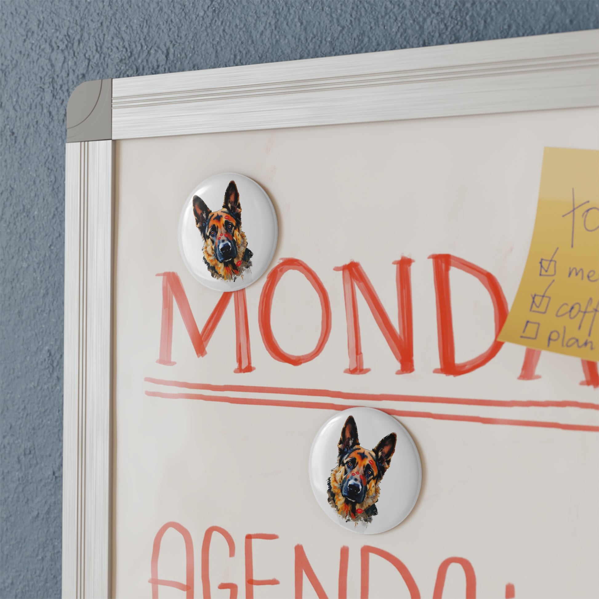 German Shepherd Love Round Button Magnet — Cute Kissed Spaniel Fridge Magnet
