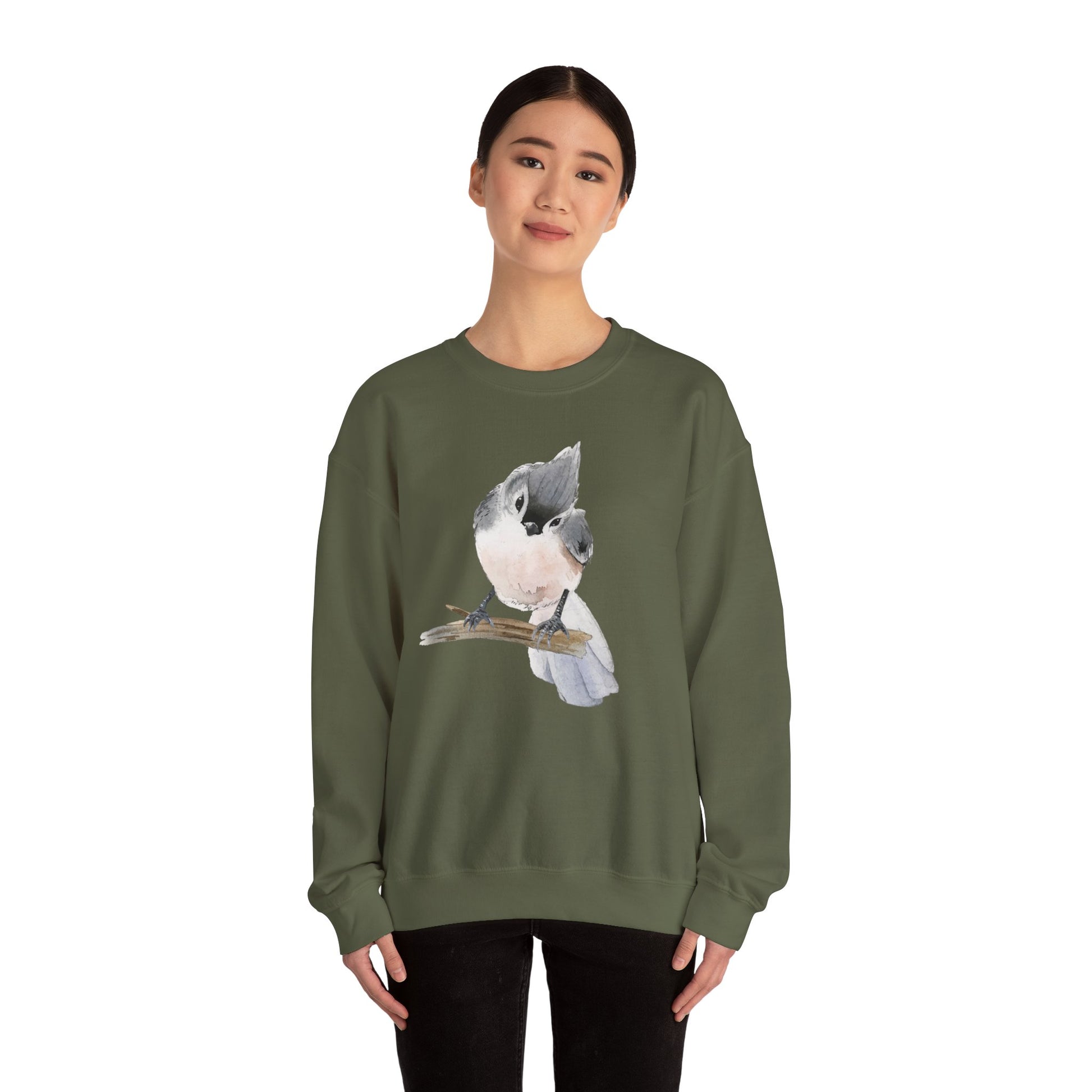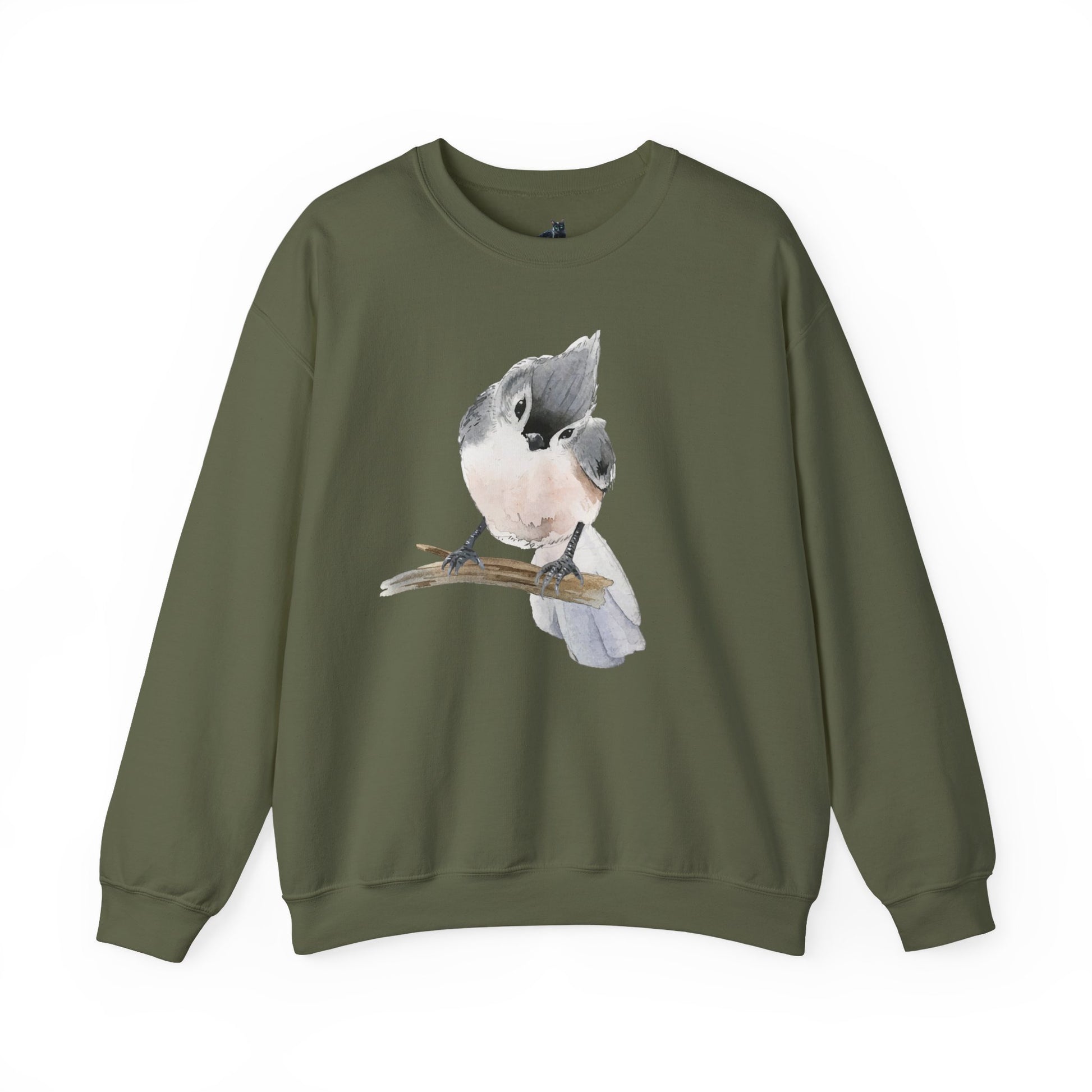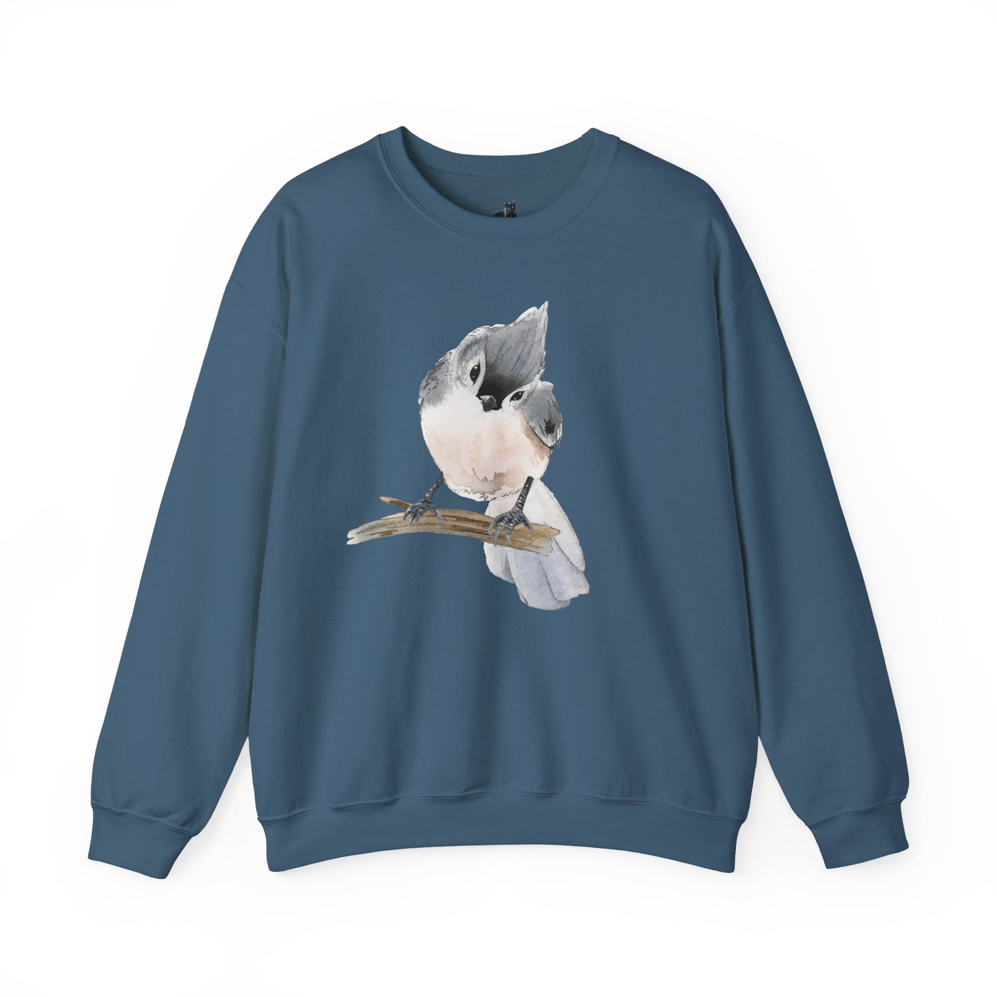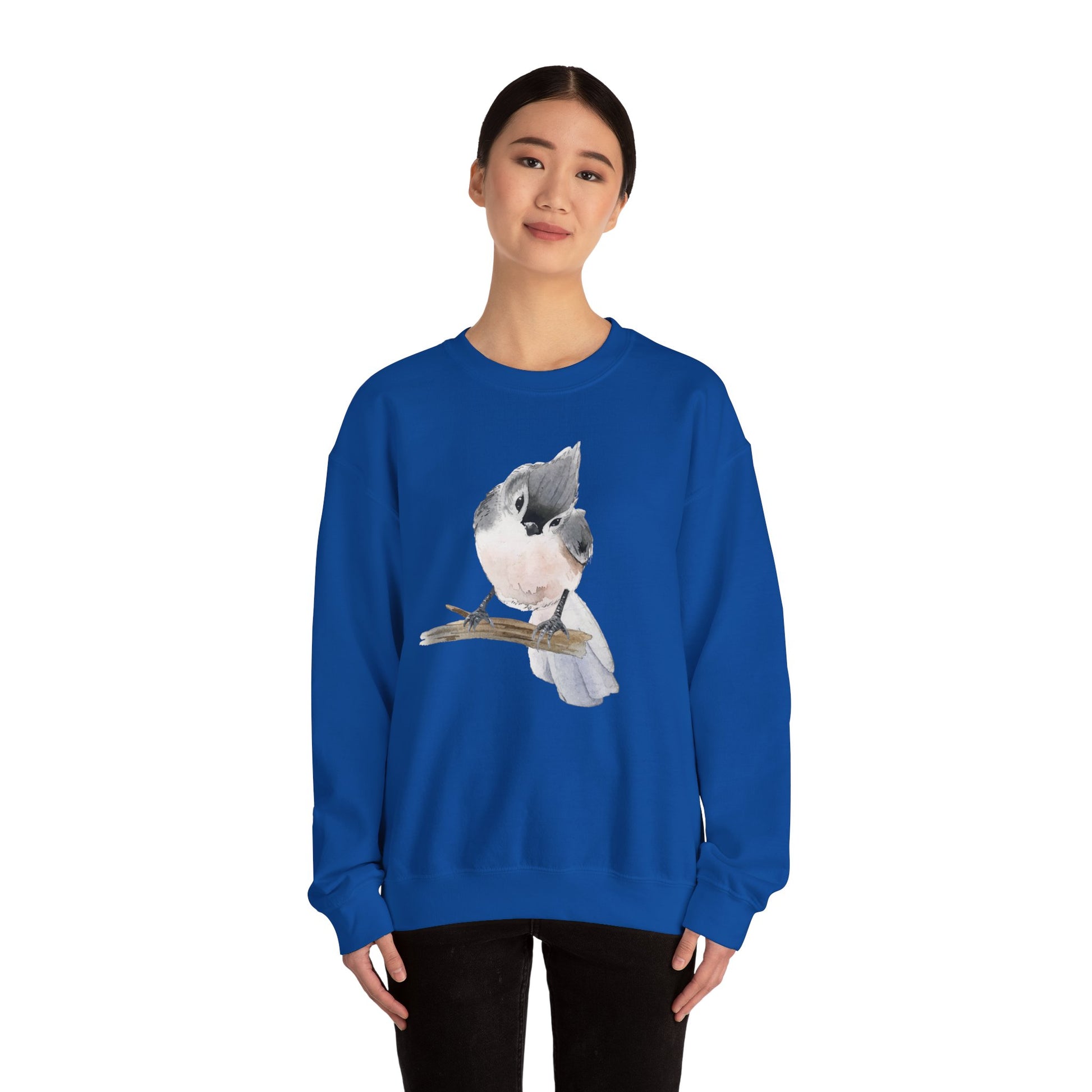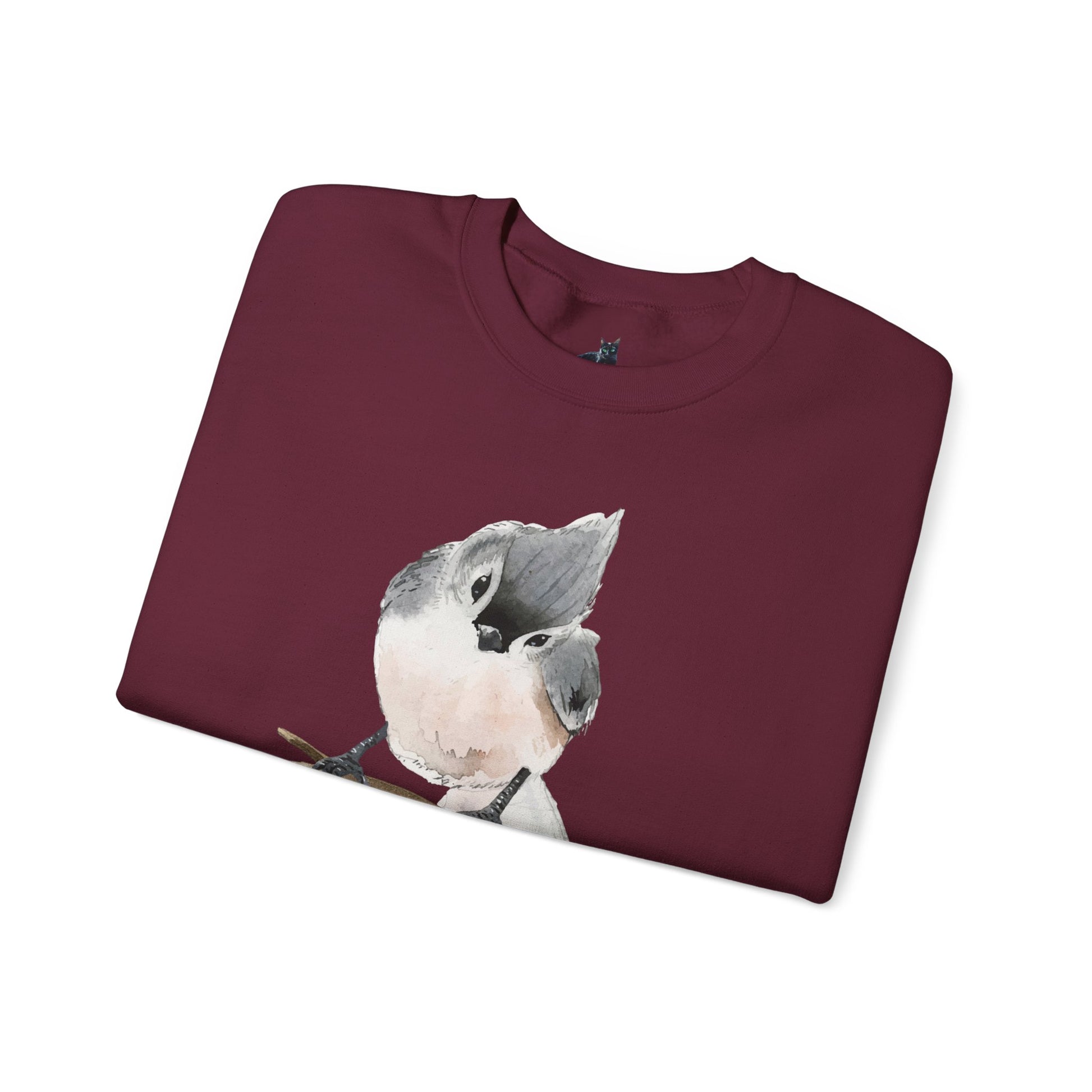 Tufted Titmouse Illustration Sweatshirt — 'Certified Bird Nerd' Crewneck